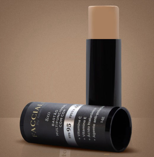 O Bastão Base Multifuncional da FACCIALE segue um formato de bastão com maquiagem, proteção solar e efeito "soft focus". Auxilia na proteção contra a radiação infra vermelha e luz visível, ajudando a preservar o DNA da pele e impedindo a formação de radicais livres. Sua composição contém Vitamina C, Vitamina E, Ácido Hialurônico de baixo peso molecular que melhoram a firmeza, elasticidade e textura da pele, ação antioxidante, resistente à água e suor...
